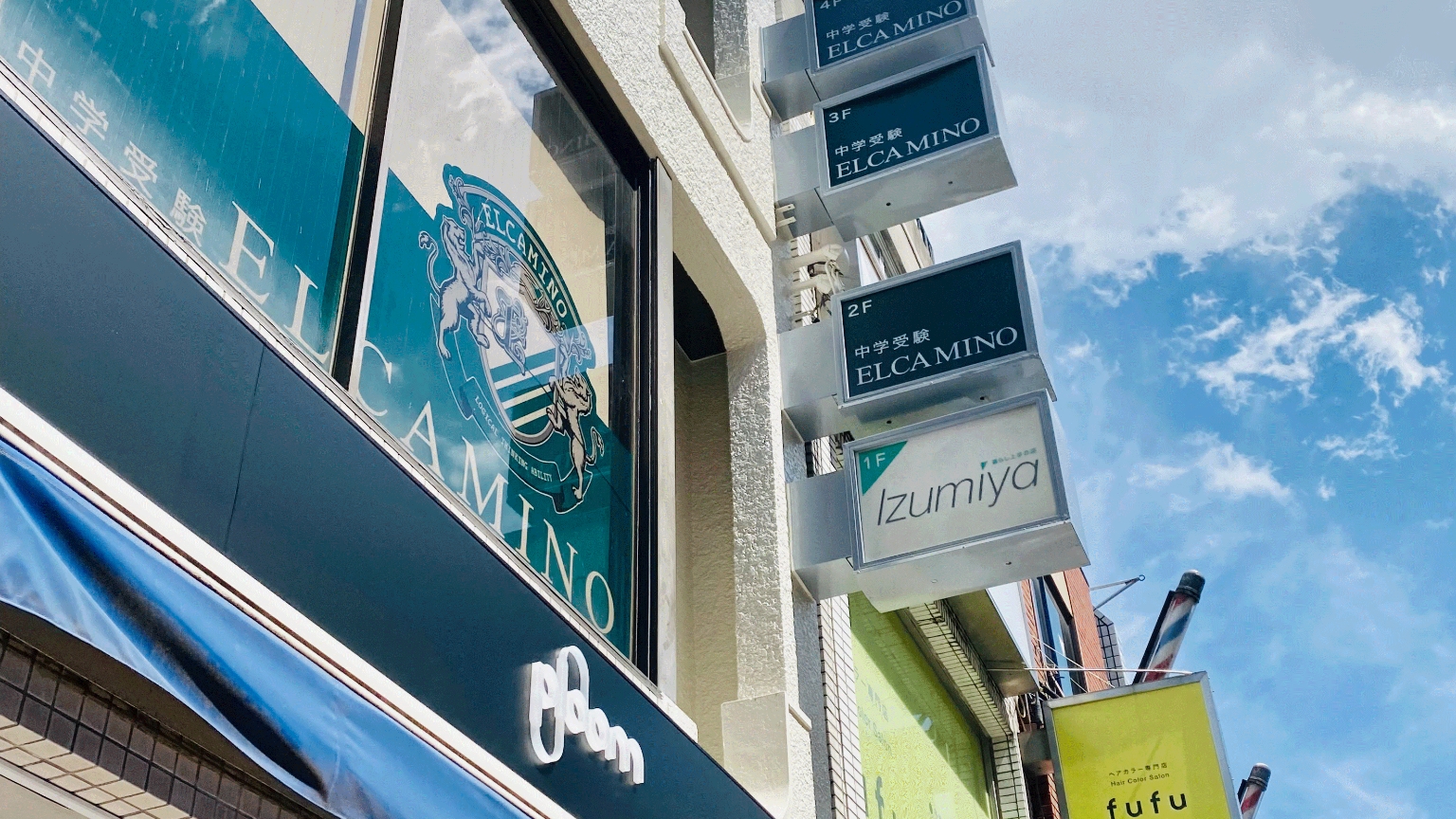 雑貨屋さん「Izumiya」が見えたら、2〜4階がエルカミノです(受付は2階になります)。